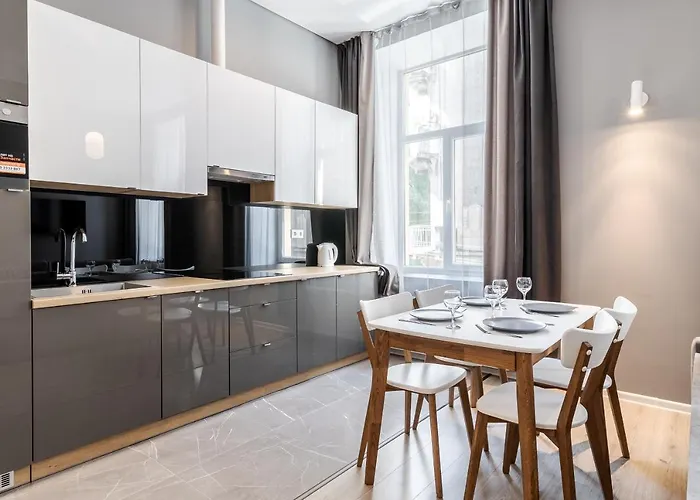 Apartament o powierzchni 46 m^2 oferuje możliwość zwiedzania takich miejsc jak Archikatedralny sobór św. Jura we Lwowie w odległości około 20 min spacerem od obiektu, oraz Wysoki Zamek - 19 min spacerem od obiektu. Dotarcie do serca Lwowa zajmie Ci 10 min. Ratusz we Lwowie znajduje się w odległości 5-minutowego spaceru, a Park Stryjski leży 5 min jazdy od tego apartamentu.